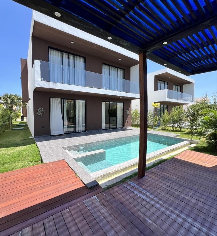 Espectacular villa de lujo en venta en Vista Cana, una de las comunidades cerradas más exclusivas de Punta Cana. Con 4 habitaciones, 4.5 baños, piscina privada, pérgola exterior, jardín y parqueo para 4 vehículos, esta propiedad de 210 m² construidos y 432 m² de terreno ofrece el equilibrio perfecto entre diseño moderno y contacto con la naturaleza.