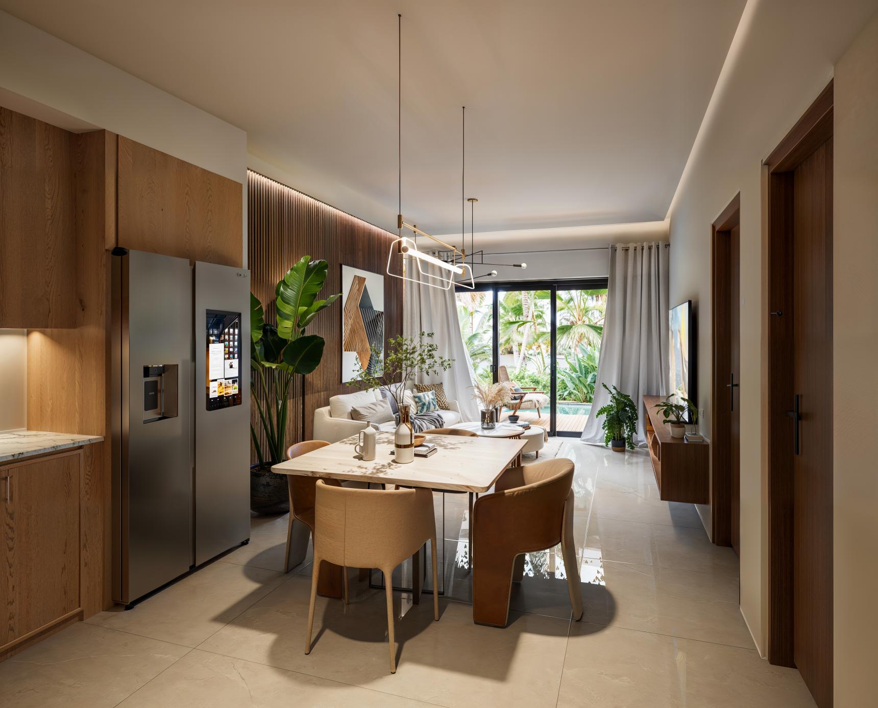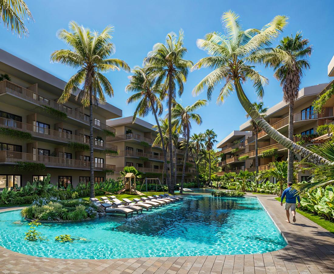 Hay pocas zonas en el Caribe donde una inversión inmobiliaria te pone en el centro de todo sin sacrificar el entorno natural. Downtown Punta Cana es una de esas excepciones, y este eco condo-hotel fue diseñado precisamente para ese equilibrio. El complejo ofrece 103 apartamentos de 1 y 2 habitaciones distribuidos en 4 niveles más rooftop, con áreas totales que van desde 40 hasta 110 metros cuadrados. Las unidades de planta baja tienen acceso directo a la piscina mediante swim-up privado, y los penthouses incluyen rooftop con jacuzzi.