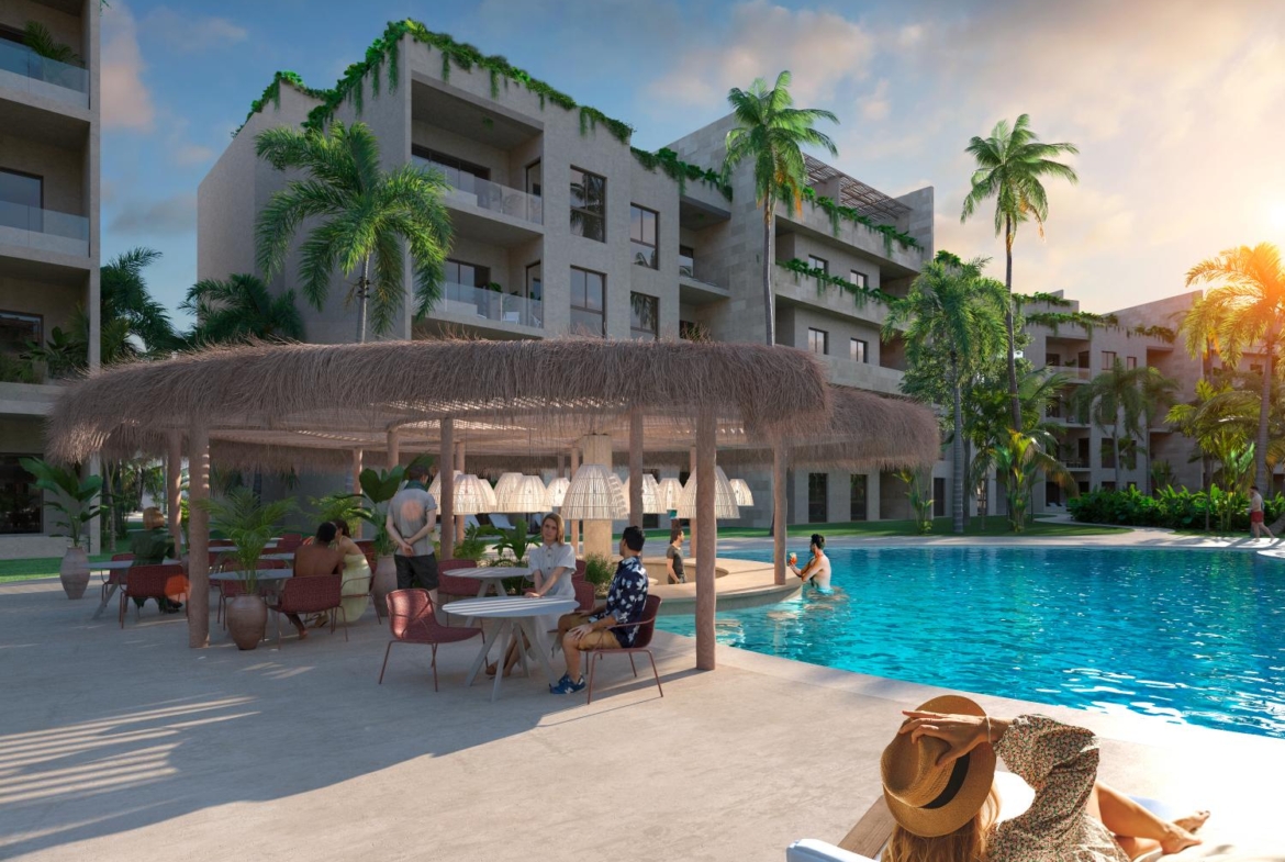 Suites hoteleras en venta a 400 m de la playa – Swim up, picuzzi y amenidades tipo resort.
